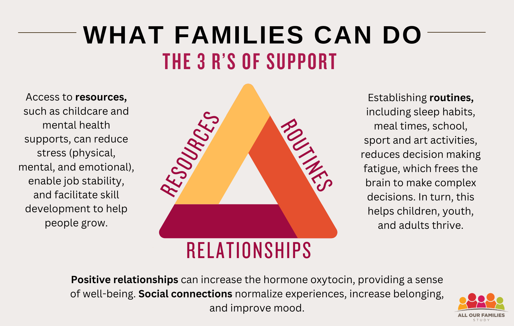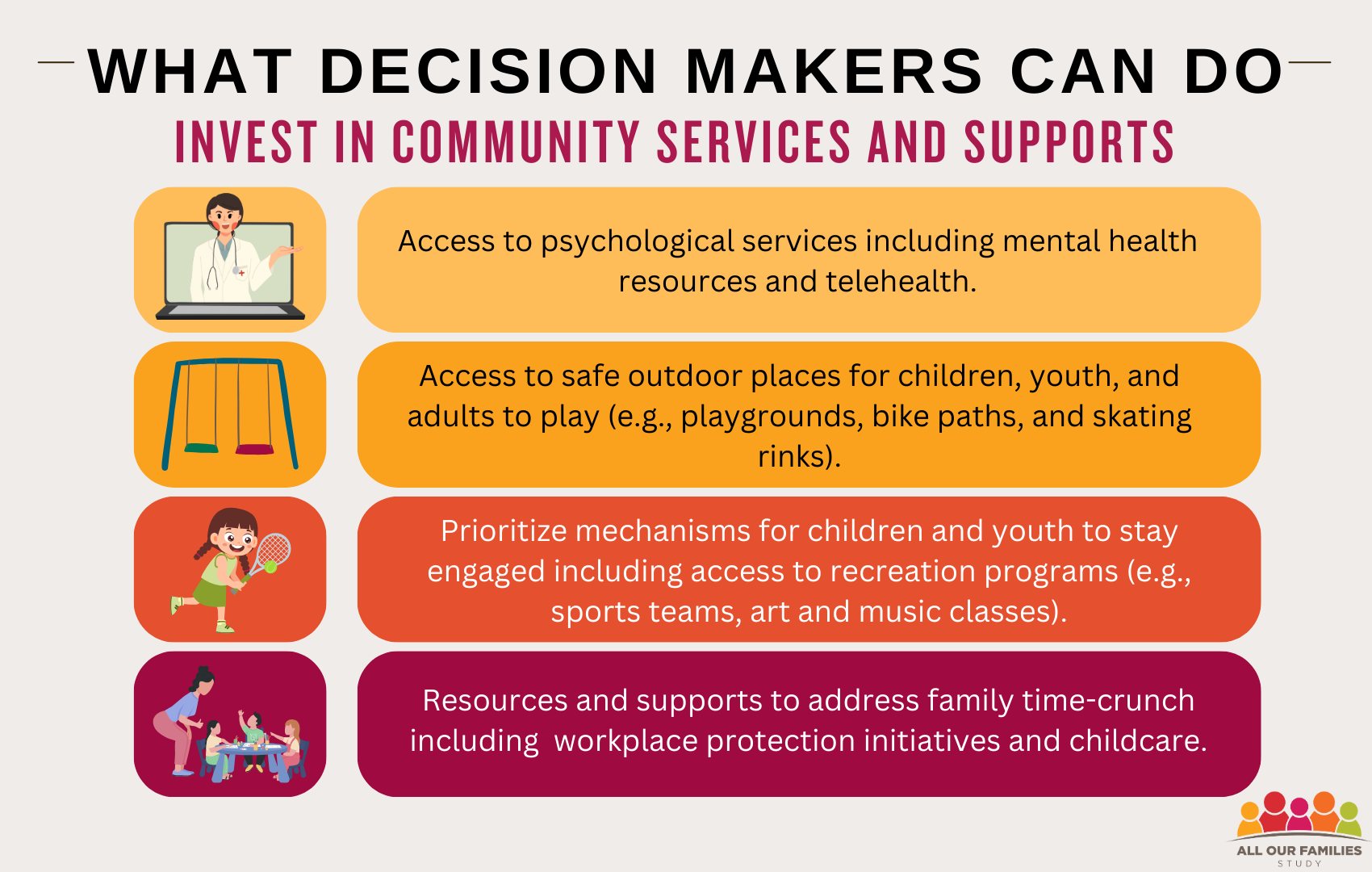 Below are some key messages about what families, communities, and decision makers can do to support the physical, emotional and mental health of members of our communities.