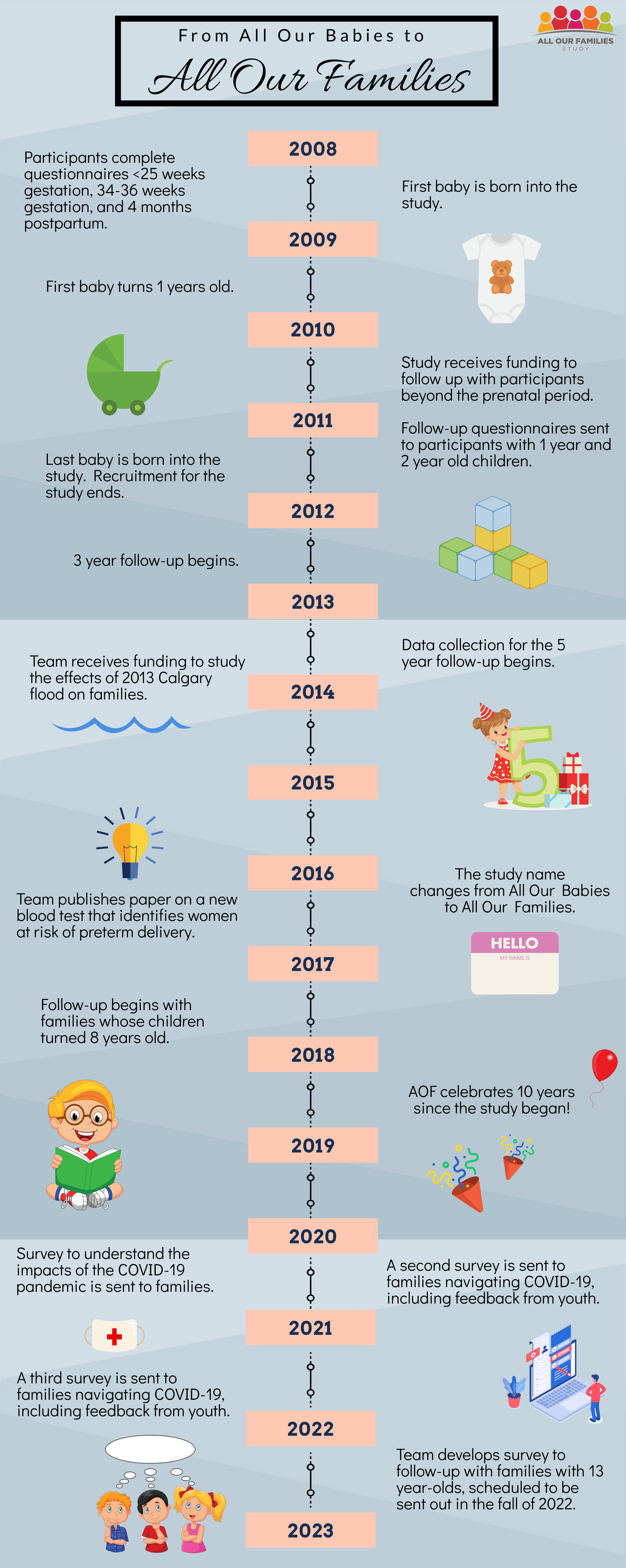 Since those first surveys, the All Our Families has continued to receive funding to follow these mother-baby pairs for nearly two decades.